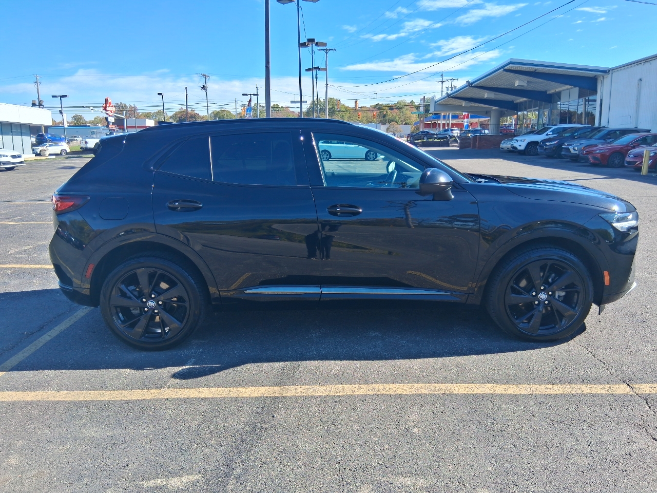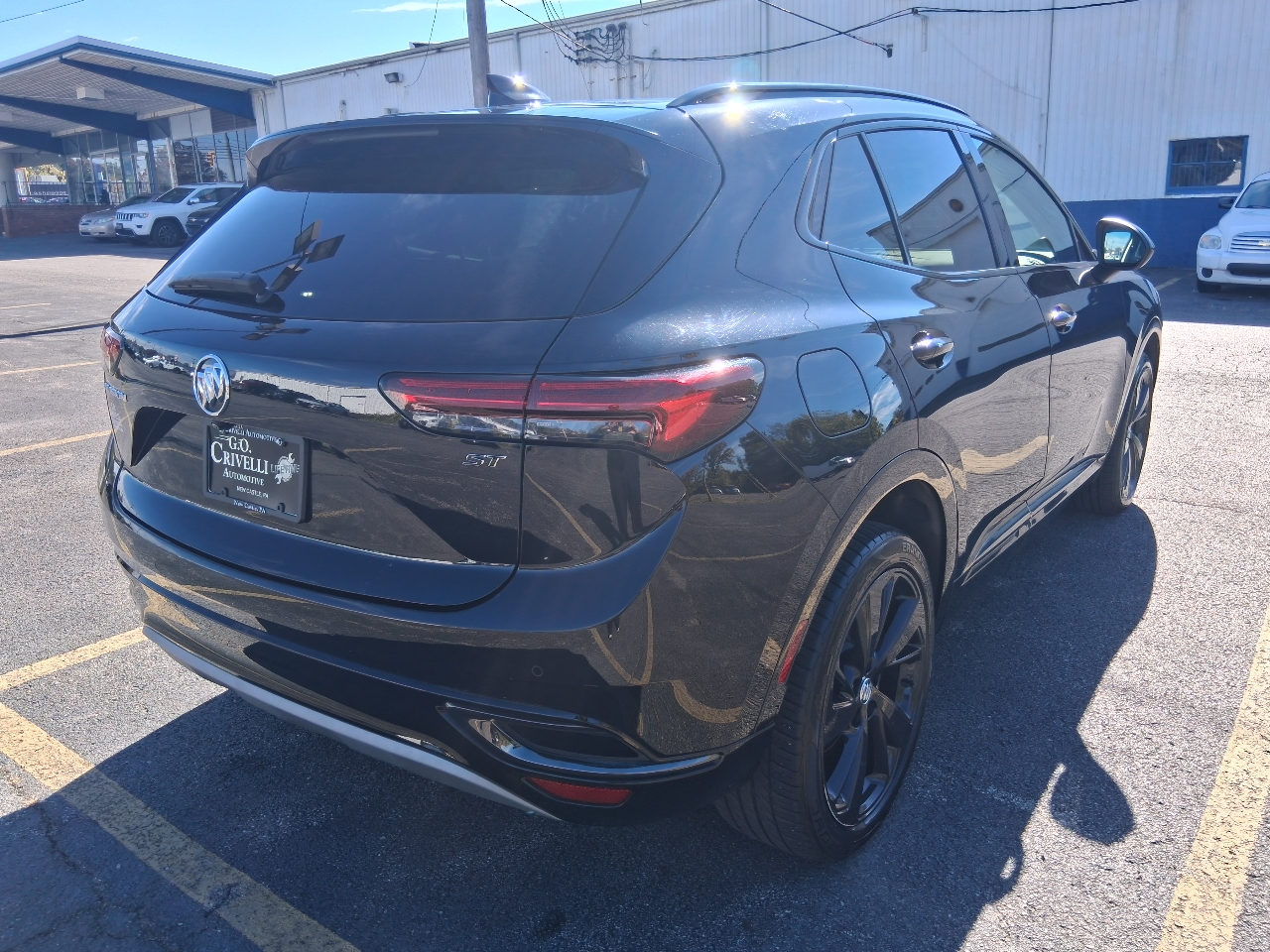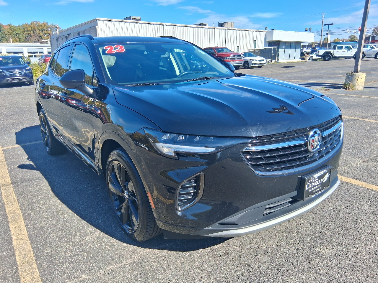 thanks to the Envision's hands-free power liftgate access will be easier than ever. With its striking LED headlamps and tail lamps, you'll light up the night and turn heads wherever you go. The Silver roof rails add a touch of sporty flair, perfect for all your outdoor gear.