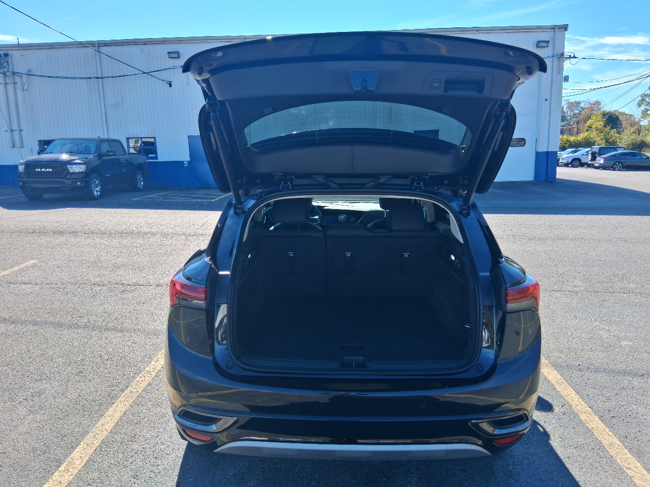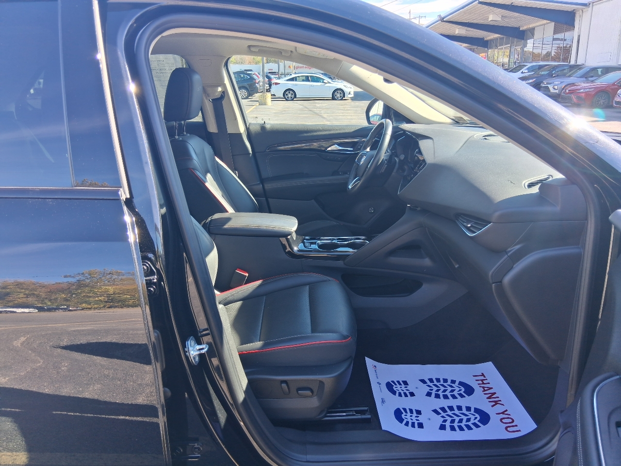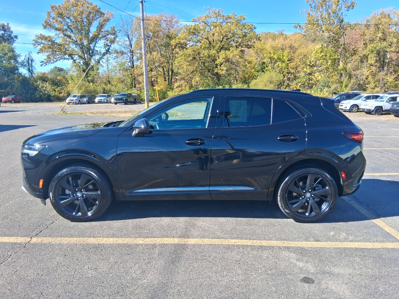thanks to the Envision's hands-free power liftgate access will be easier than ever. With its striking LED headlamps and tail lamps, you'll light up the night and turn heads wherever you go. The Silver roof rails add a touch of sporty flair, perfect for all your outdoor gear.